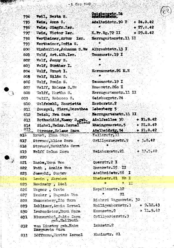 9] Siehe Gottwaldt / Schulle, Judendeportationen, S. 352, dazu https://www.holocaust.cz/de/opferdatenbank/opfer/21490-abraham-lewin/. (Zugriff 10.02.2026).
