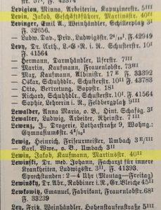Während er in seiner Mainzer Zeit immer unter dem Namen Jakob in den Adressbüchern eingetragen war, d. h., der verdeutschten Form von Jankel, griff die Gestapo bei der Anlage seiner Karteikarte in Wiesbaden auf seinen eindeutig jüdischen Vornamen Abraham zurück. Auch war sein Nachname zunächst immer mit „v“ geschrieben worden; erst 1938 findet man Jakob Lewin sogar in einem zusätzlichen Eintrag im Mainzer Adressbuch mit „w“ geschrieben. In dieser Form, als Abraham Jankel Lewin, wurde er dann in Wiesbaden geführt.