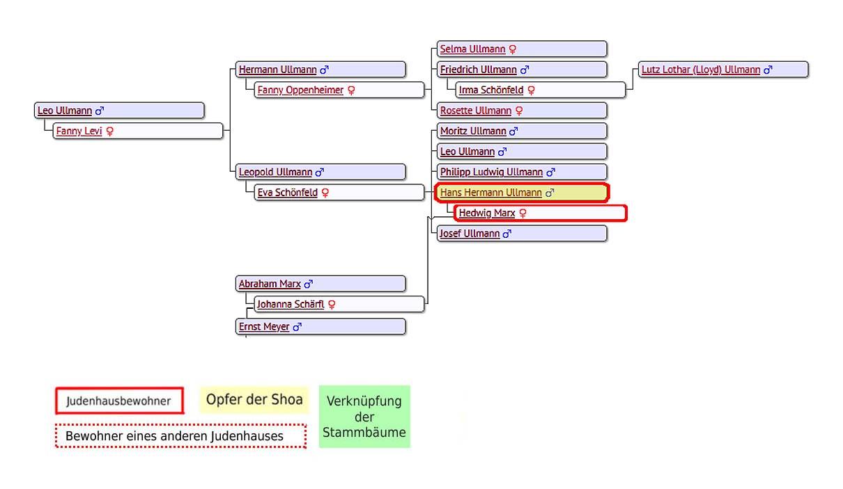 Auf einer Liste, auf der die dortigen Bewohner festgehalten wurden, stand zunächst nur Ludwig Kiefer, der dort bisher mit seiner Frau Rosa zwei Zimmer bewohnte. Rosa Kiefer war im Mai 1942 verstorben und ihr Mann wurde daraufhin im Jüdischen Altersheim in der Geisbergstr. 24 untergebracht, wo er sich wenige Tage nachdem er die Aufforderung erhalten hatte, sich wegen der geplanten „Evakuierung“ am 1. September in der Sammelstelle in der Friedrichstr. 33 einzufinden, das Leben nahm. Damit war die Wohnung frei. Handschriftlich wurde dann auf der genannten Liste – logischerweise nach dem 14. Juni 1942 – „Ullmann“ ergänzt. Unklar bleibt auch dieses Mal, ob eine oder zwei Personen einzogen.[39]
