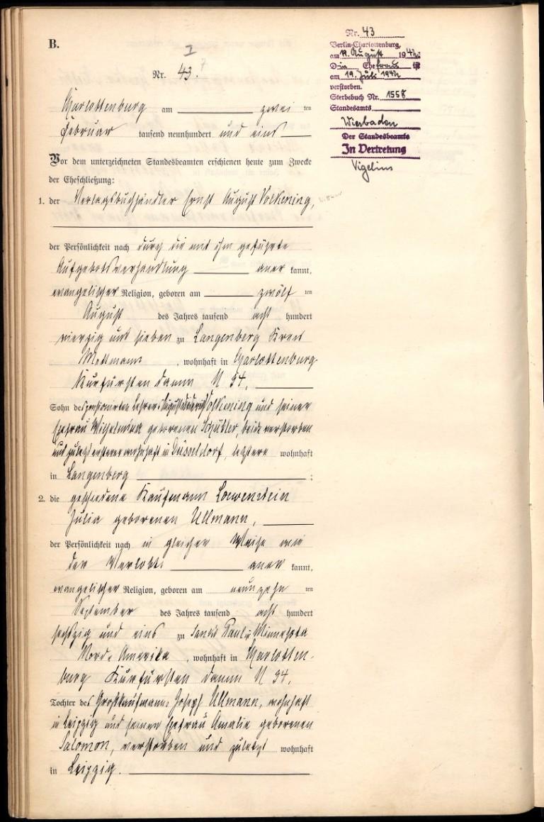 [15] Heiratsregister Berlin-Charlottenburg 43 / 1901.