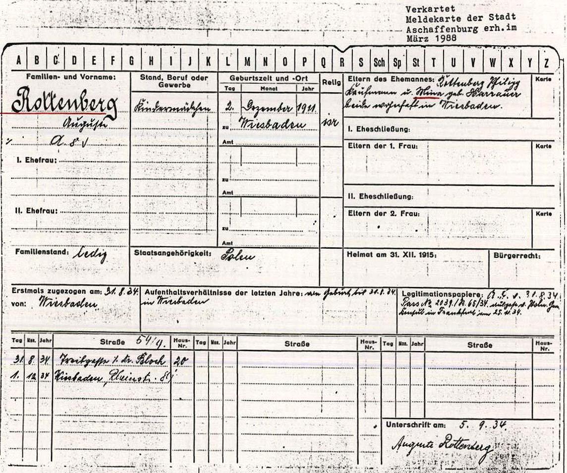 [2] HHStAW 518 867 (14). Die Notiz basiert auf der Angabe, die Philipp Rottenberg in seiner Devisenakte 1939 selbst gemacht hatte, siehe HHStAW 519/3 21295 (2).