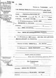 Eine zweite Variante brachte Emanuel Rottenberg ins Spiel, basierend auf der Aussage von einem Zeugen Jack Matzner gegenüber der Jüdischen Gemeinde. Er hatte ausgesagt, Mina Rottenberg sei am 28. September 1942 nach Polen deportiert worden. Da sie aber beim Tod ihres Mannes unzweifelhaft in Wiesbaden zugegen war, ging Emanuel Rottenberg davon aus, dass sie wieder nach Wiesbaden zurückgekehrt war. Dafür, dass eine solche Ausweisung damals angeordnet worden war, gibt es allerdings keine Belege. Eine handschriftliche, undatierte Anmerkung eines Mitarbeiters der Entschädigungsbehörde auf diesem Dokument lautet entsprechend „offensichtlich unrichtig“.[76] Man wird also davon ausgehen können, dass die Familie Rottenberg weder 1938, noch Mina Rottenberg 1939 nach Polen abgeschoben wurde.