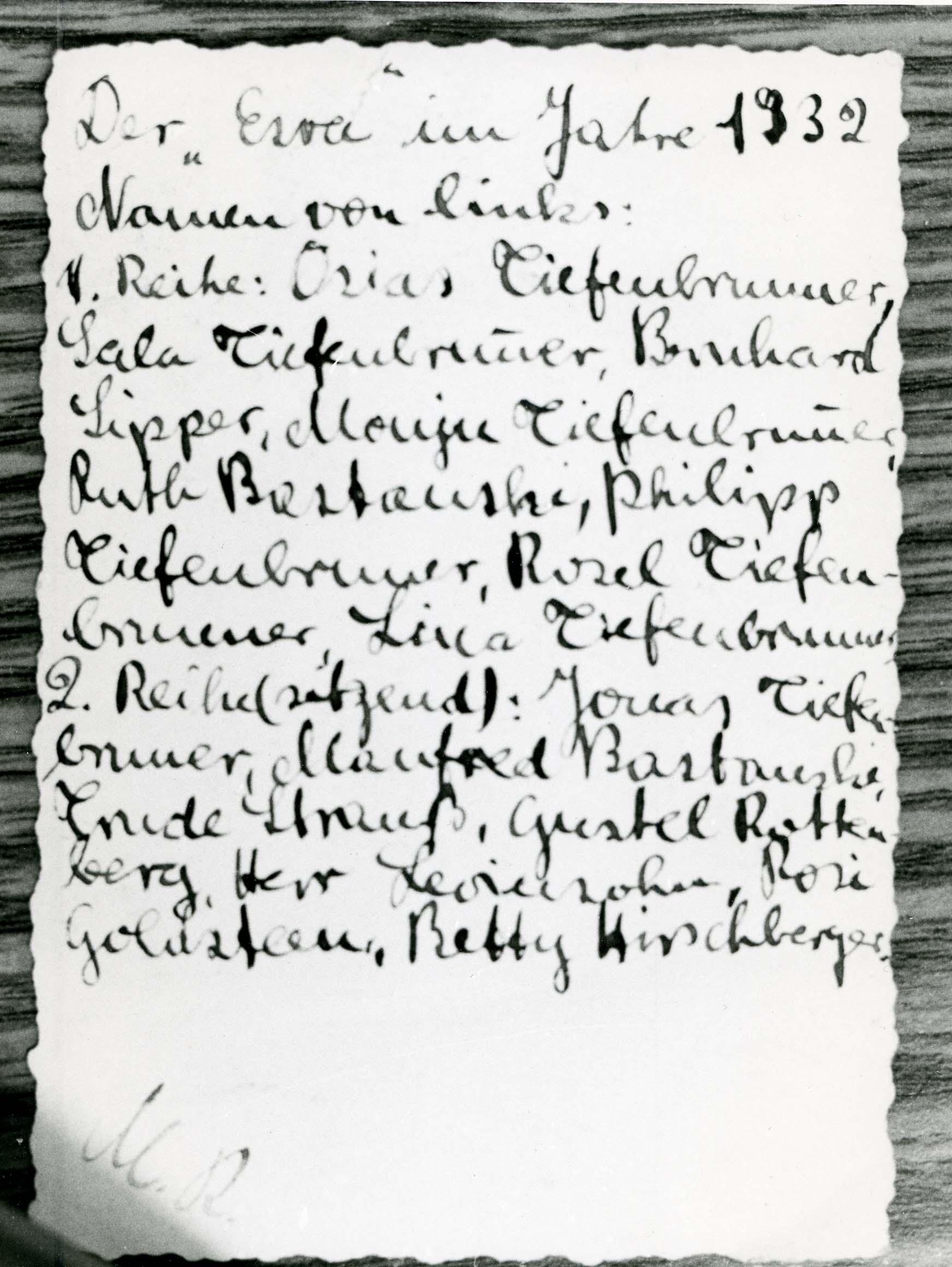 Auch drei der Töchter von Philipp Rottenberg, Auguste, Regina und Ruth Dina, engagierten sich nachweislich zumindest in einer der orthodoxen Gruppen. Die beiden Jüngsten sind im Jüdischen Adressbuch als Mitglieder der ‚Esra’, dem orthodoxen Jugendbund genannt und Auguste / Gusti, ist auf der rückseitigen Beschriftung eines Fotos der Gruppe aus dem Jahr 1932 aufgeführt.[24] Der Bund war die jüdisch-orthodoxe Antwort auf die deutsche Jugendbewegung. Die neun bis fünfzehnjährigen Jungen und Mädchen unternahmen genauso wie ihr „deutsches“ Pendant viele Wanderungen, allerdings geschlechtlich getrennt, übten sich in sportlichen Spielen und pflegten den gemeinsamen Gesang. Ihr Ziel war – ähnlich wie das der Agudas Isroel’ – die Entwicklung einer jüdischen Persönlichkeit, in der das Thora- und das Weltwissen in einem gesunden Körper zur Entfaltung kommen sollte.[25]